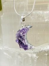 • Load image into Gallery viewer, Amethyst Druzy Moon Pendant on 925 Sterling Silver Chain