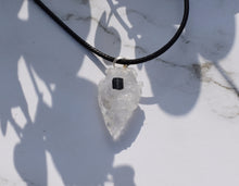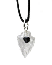 • Load image into Gallery viewer, Clear Quartz & Black Tourmaline Natural Arrowhead Pendant Necklace